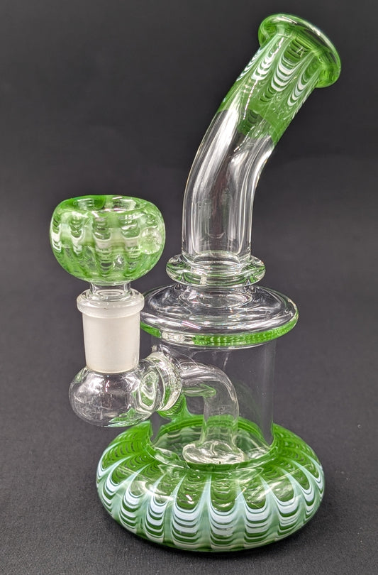 6.5" Glass Water Pipe Bong Bent Neck Perc Green Swirl
