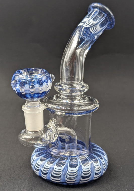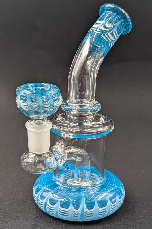 6.5" Glass Water Pipe Bong Bent Neck Perc Blue Swirl