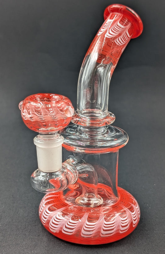 6.5" Glass Water Pipe Bong Bent Neck Perc Red Swirl