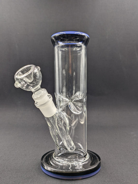 8" Glass Water Pipe Bong Thick Cylinder w/ 6 Cut Downstem PK