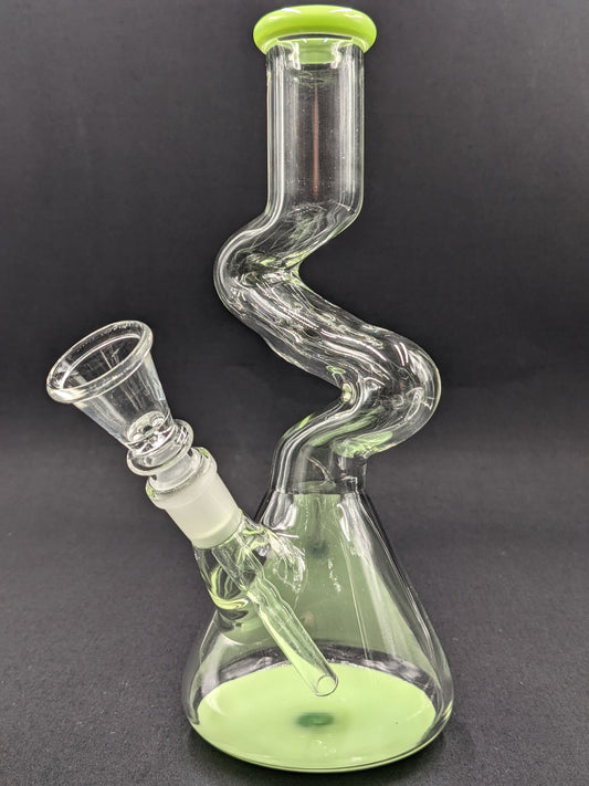 8" Glass Water Pipe Bong Zig Zag Green +5 FREE Screens
