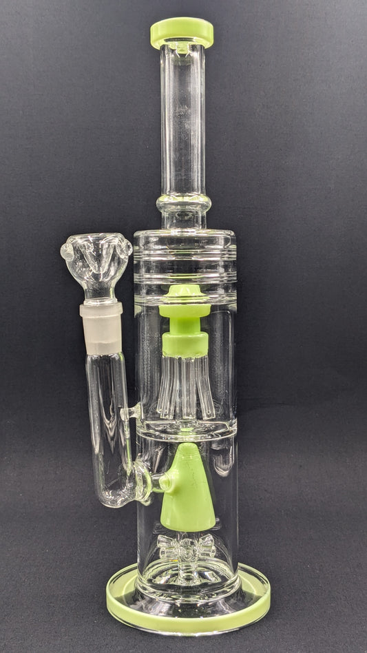 14" Glass Water Pipe Bong Dual Perc Chambers Green