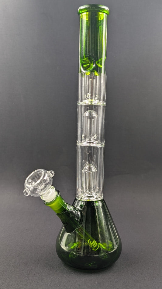 14" Glass Water Pipe Bong Green Triple Perc + 5 FREE Screens