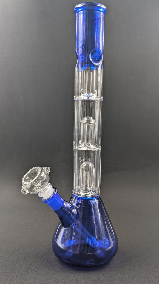 14" Glass Water Pipe Bong Blue Triple Perc + 5 FREE Screens