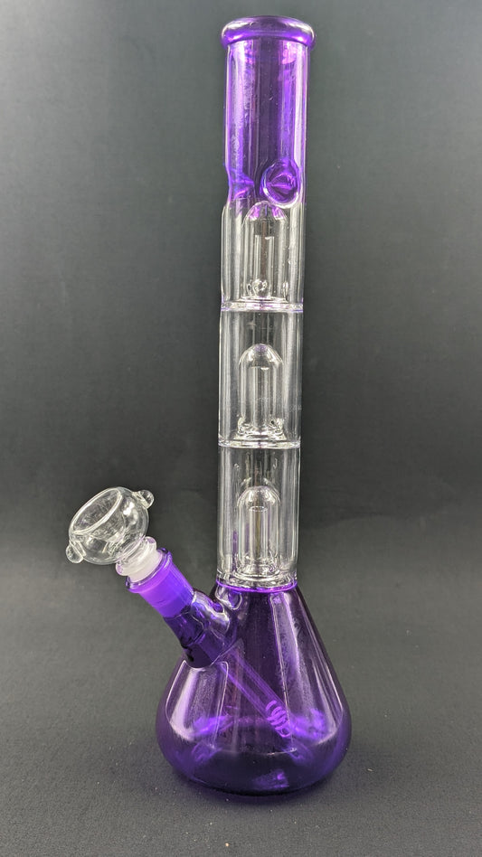 14" Glass Water Pipe Bong Purple Triple Perc + 5 FREE Screens