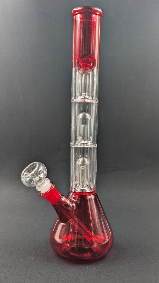 14" Glass Water Pipe Bong Cherry Triple Perc + 5 FREE Screens