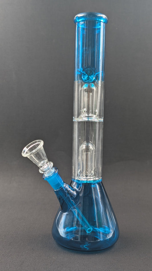 12" Glass Water Pipe Bong Sky Double Perc + 5 FREE Screens