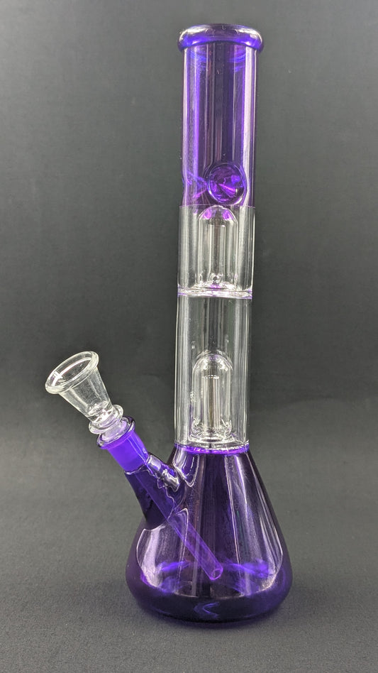 12" Glass Water Pipe Bong Purple Double Perc + 5 FREE Screens