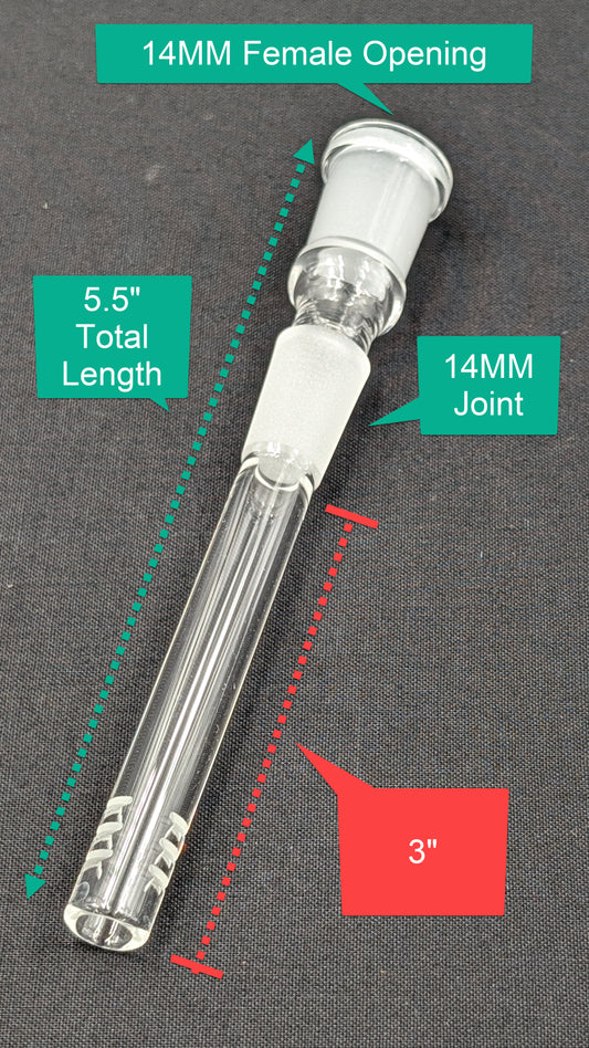 3" 6 Cut Glass Downstem 14MM Male to 14MM Female Opening