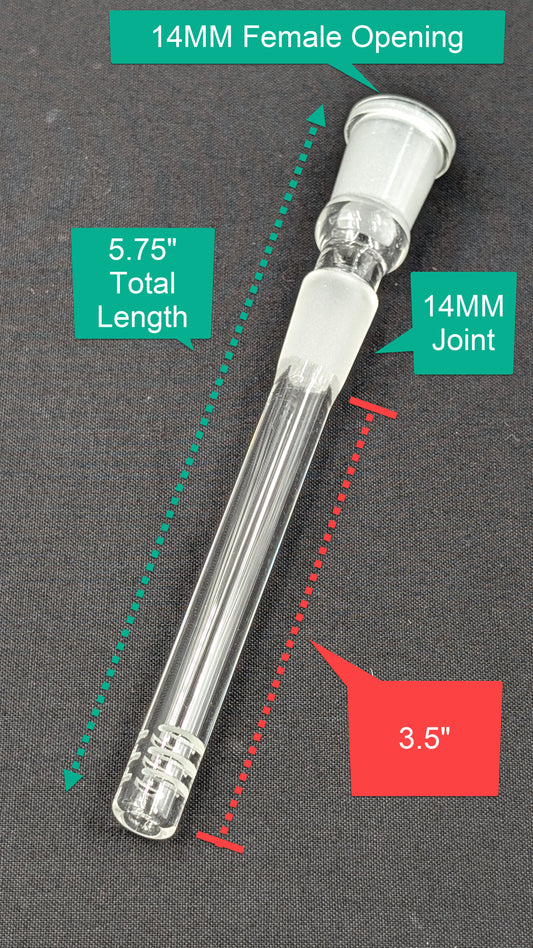 3.5" 6 Cut Glass Downstem 14MM Male to 14MM Female Opening