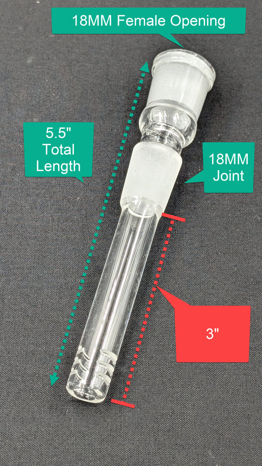 3" 6 Cut Glass Downstem 18MM Male to 18MM Female Opening