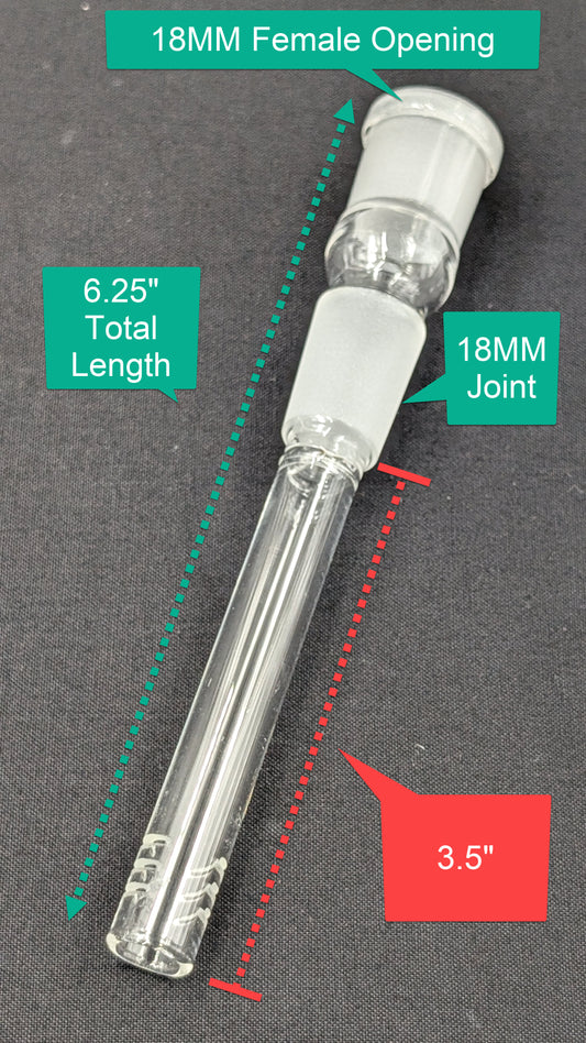 3.5" 6 Cut Glass Downstem 18MM Male to 18MM Female Opening