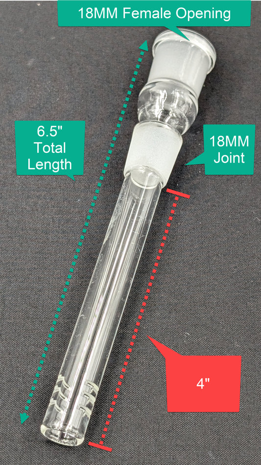 4.5" 6 Cut Glass Downstem 18MM Male to 18MM Female Opening