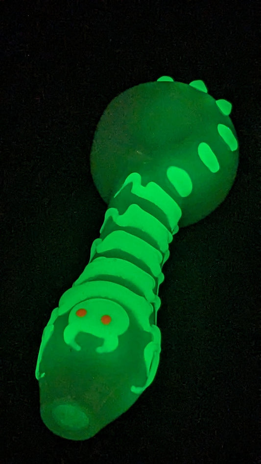 4.5" Centipede Glow In The Dark Glass Spoon White