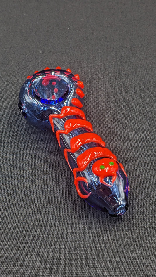 4.5" Centipede Glow In The Dark Glass Spoon Blue