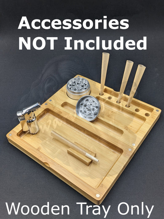 Bamboo Back Flip Magnetic Rolling Tray Storage Box