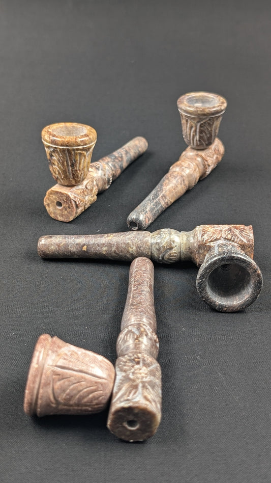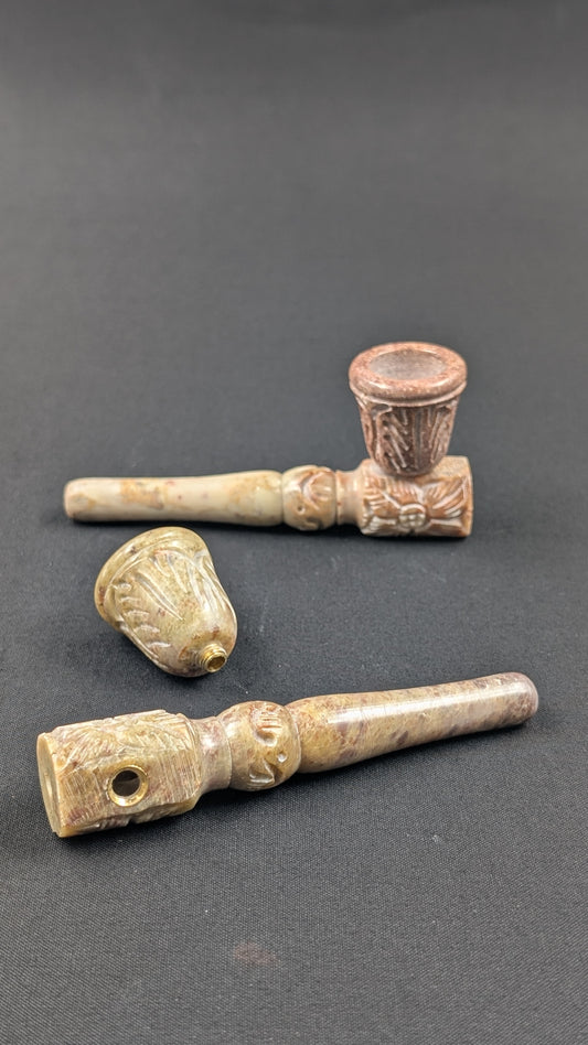 4" Stone Spoon Hand Pipe with Engravings + 5 Free Screens 002