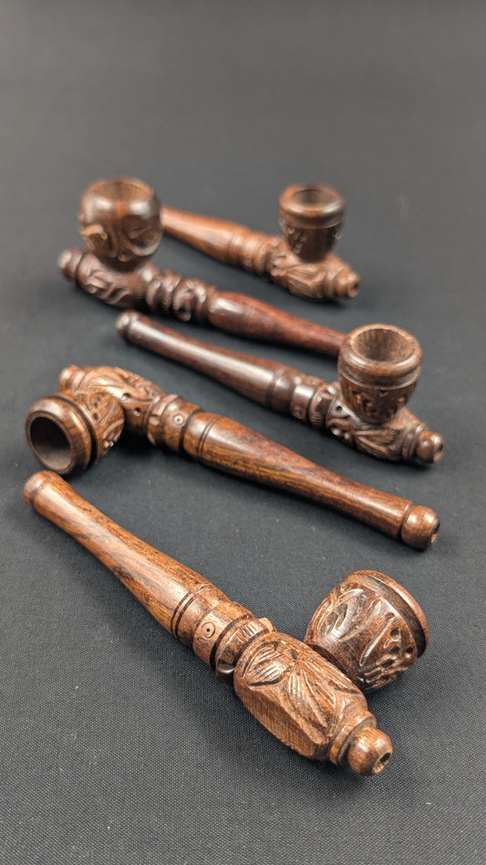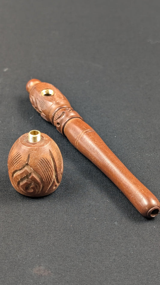 5" Wood Spoon Hand Pipe with Engravings + 5 Free Screens DK1