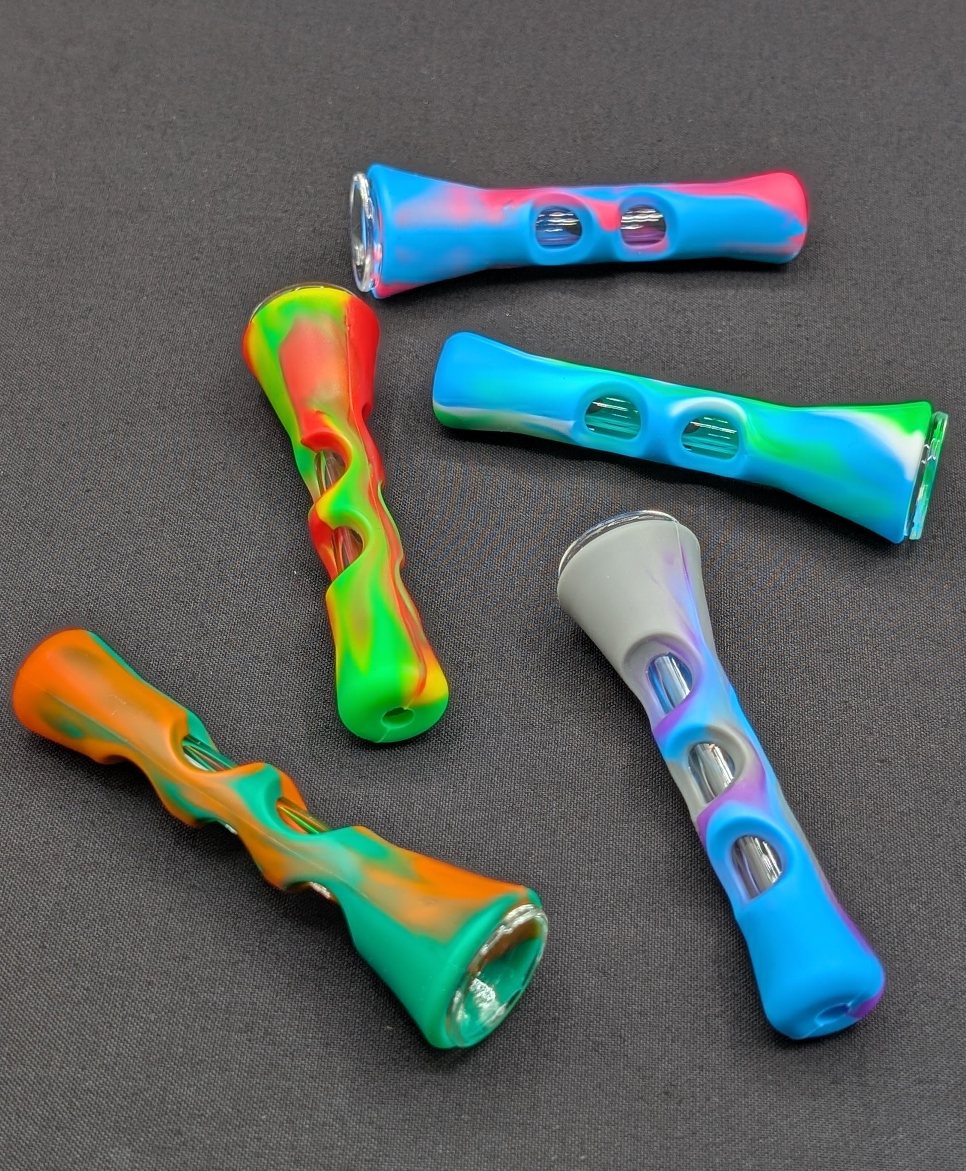 Description: 2 Silicone Wrapped Glass Pipe One Hitters