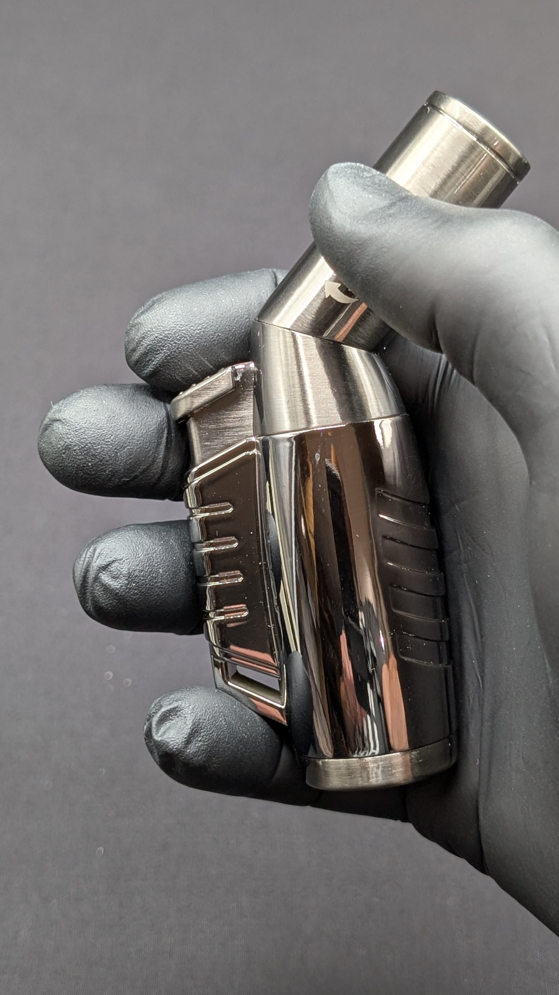 Jobon 3 Jet Torch Butane Lighter with Adjustable Nozzle - Silver